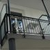 Kleiner Balkon mit Beton Bodenplatte, Metallgeländer und Edelstahlhandlauf.